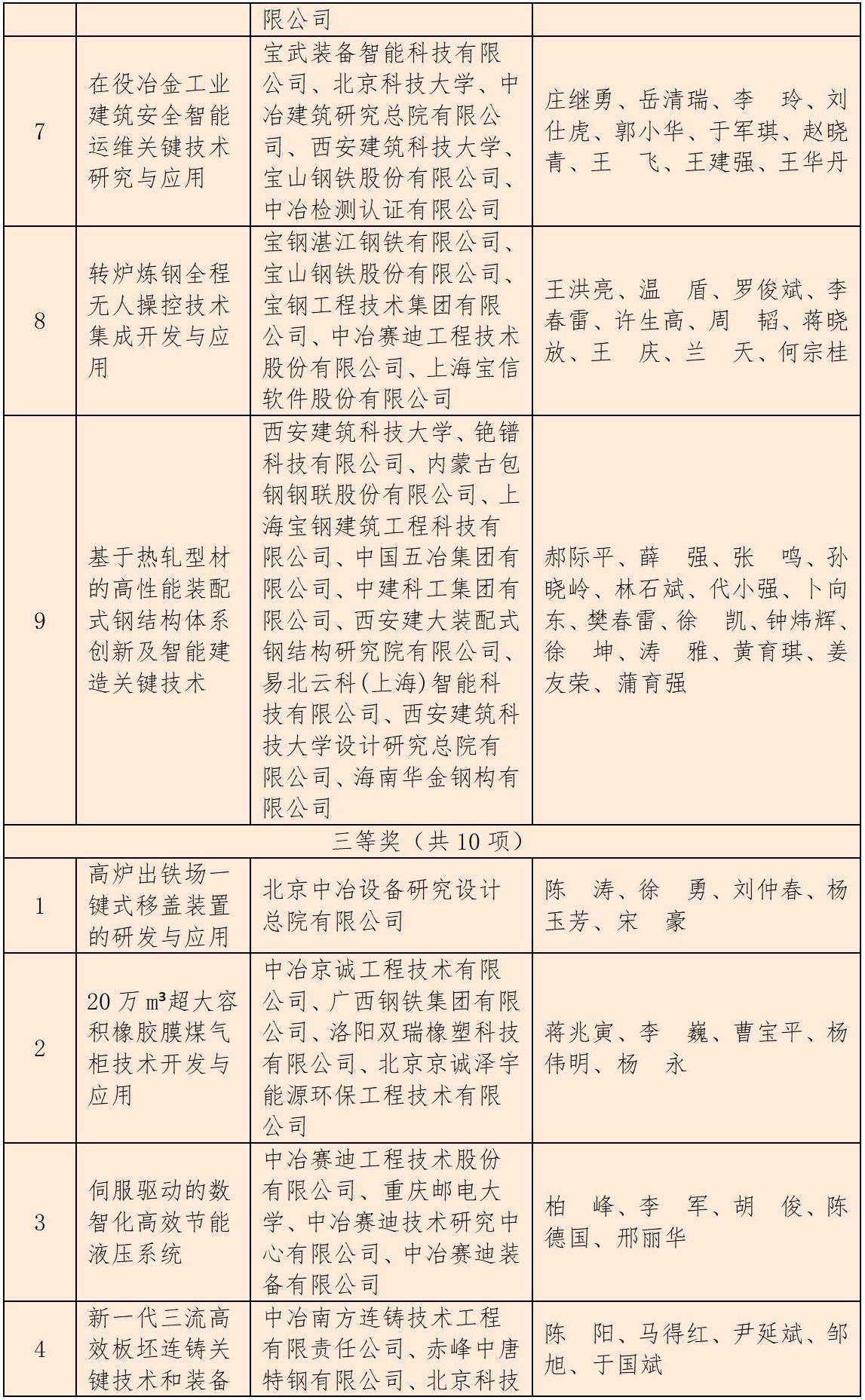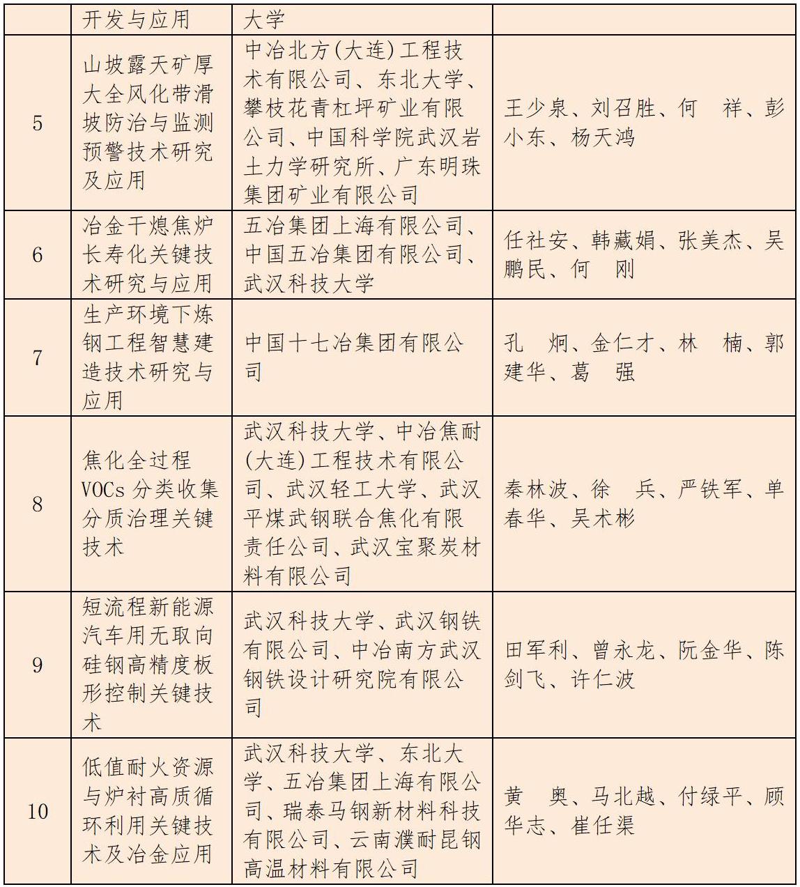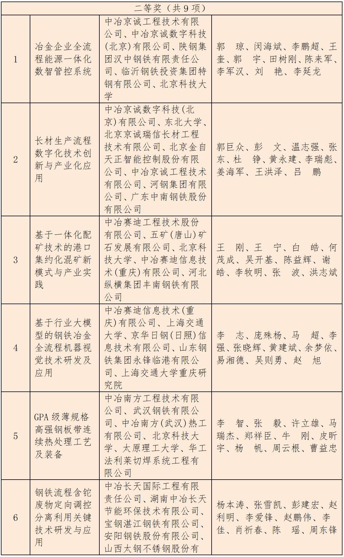 2025年度中国公海赌赌船官网jc710获得冶金科技奖项目名单