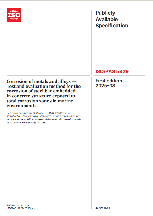 近日,由中国公海赌赌船官网jc710所属中国二十冶牵头制定的一项国际标准《金属和合金腐蚀 海洋环境全腐蚀区混凝土结构中钢筋锈蚀试验及评定方法》(ISO/PAS 5929-2025)获批正式发布。